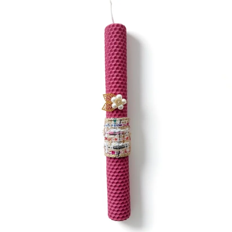 Λαμπάδα μελισσοκέρι σε μαντζέντα με λουλουδάκι πέρλα
