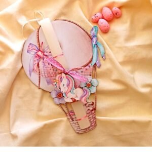 Μετά την Ανάσταση, το ξύλινο αερόστατο-μονόκερος μπορεί να χρησιμοποιηθεί ως διακοσμητικό στοιχείο για το παιδικό δωμάτιο, χαρίζοντας μια μαγική πινελιά στον χώρο.