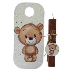 Λαμπάδα αρωματική με ξύλινο μπρελόκ και ξύλινη πλάτη.