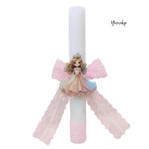 Λαμπάδα, 25 εκ, στολισμένη κορδέλες και ξύλινο διακοσμητικό πριγκίπισσα. Θα τη λάβετε σε συσκευασία δώρου ασορτί στολισμένη.