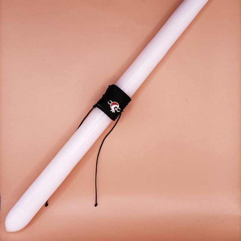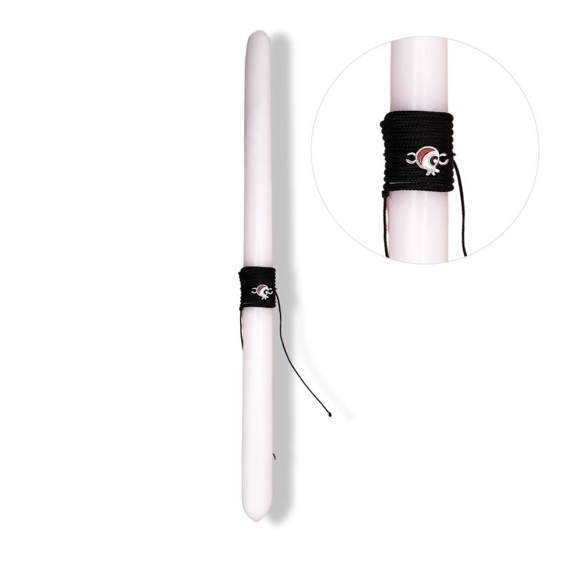 Αρωματική λευκή λαμπάδα 34εκ με βραχιόλι ρόδι. Μαύρο συνθετικό κορδόνι με ρυθμιζόμενο μήκος.