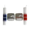 Σετ που αποτελείται από 2 γκρι αρωματικές, σκρατς λαμπάδες και 2 σουβέρ από τσιμέντο σε σχήμα καρδιάς , ζωγραφισμένα στο χέρι και περασμένα με ακρυλικό οικολογικό βερνίκι. Οι λαμπάδες είναι δεμένες με χρωματιστό γιούτα. Μπορείτε, είτε να τις κρατήσετε με ενιαίο το κορδόνι, ο ένας δίπλα στον άλλον, είτε κόβοντας το κορδόνι με ένα ψαλίδι.