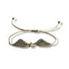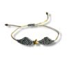 Μακραμέ βραχιόλι ρυθμιζόμενο με χριστουγεννιάτικο σχέδιο Φτερά Αγγέλου, φτιαγμένο με πράσινο κερωμένο νήμα και αστέρι από αιματίτη.