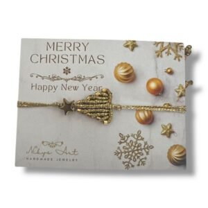 Μακραμέ βραχιόλι ρυθμιζόμενο με σχέδιο χριστουγεννιάτικο δέντρο, φτιαγμένο με χρυσό μεταλιζέ κερωμένο νήμα και αστέρι από αιματίτη.