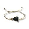 Μακραμέ βραχιόλι ρυθμιζόμενο με σχέδιο χριστουγεννιάτικο δέντρο, φτιαγμένο με μαύρο-ασημί μεταλιζέ κερωμένο νήμα και αστέρι από αιματίτη.