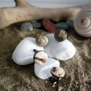 Ένα ιδιαίτερο σετ μανικετόκουμπα παρά την απλότητα τους, λόγω του υλικού και του σχεδίου του. Ένα ξεχωριστό αντρικό δώρο. Μια ιδιαίτερη πρόταση για εταιρικό δώρο. Είναι μοναδικό μια και κανένα επόμενο δεν μπορεί να γίνει ακριβώς το ίδιο. Για διευκρινήσεις. παραγγελίες ή παραλλαγές σε χρώματα της αρεσκείας σας. παρακαλώ επικοινωνήστε με τη δημιουργό.