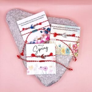 Μαρτάκι με μεταλλικό χελιδόνι και κορδόνι δίχρωμο κόκκινο άσπρο. Μεταλλικές χαντρούλες σε ασημί χρώμα και μικρές φουντίτσες στις άκρες. Το καθένα είναι τοποθετημένο σε πολύχρωμο καρτελάκι για ένα χαρούμενο καλωσόρισμα της Άνοιξης! (Το καρτελάκι πάνω στο οποίο θα είναι τοποθετημένο το βραχιόλι ενδέχεται να διαφέρει από το εικονιζόμενο)