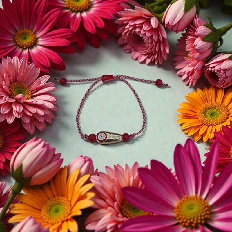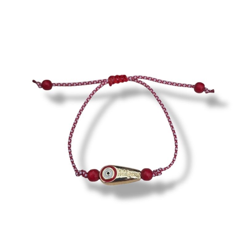 Χειροποίητο μαρτάκι βραχιολάκι με ένα μεταλλικό στοιχείο σαν δάκρυ με ένα ματάκι σε λευκό και κόκκινο με σμάλτο. Στο τελείωμα υπάρχουν ξύλινες κόκκινες χάντρες. Ένα χαρούμενο βραχιολάκι με την δυνατότητα αυξομείωσης. Ένα ιδανικό δώρο για τους αγαπημένους μας αλλά και για εμάς που ταιριάζει με πολλές εμφανίσεις. Ευκολοφόρετο και ελαφρύ.