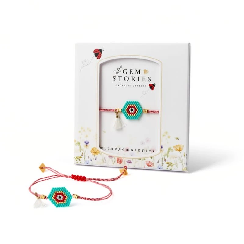Χειροποίητο μαρτάκι με χάντρες Miyuki και μάτι (evil eye) ως στοιχείο προστασίας και καλής ενέργειας.