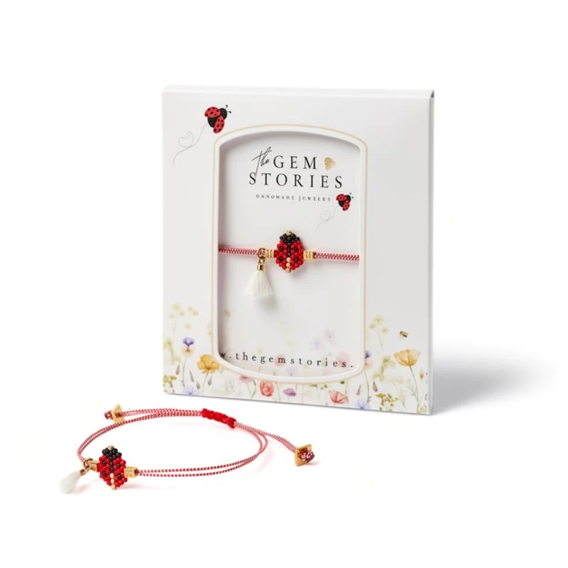 Χειροποίητο μαρτάκι με χάντρες Miyuki και κόκκινη πασχαλίτσα, το σύμβολο της τύχης και της χαράς.