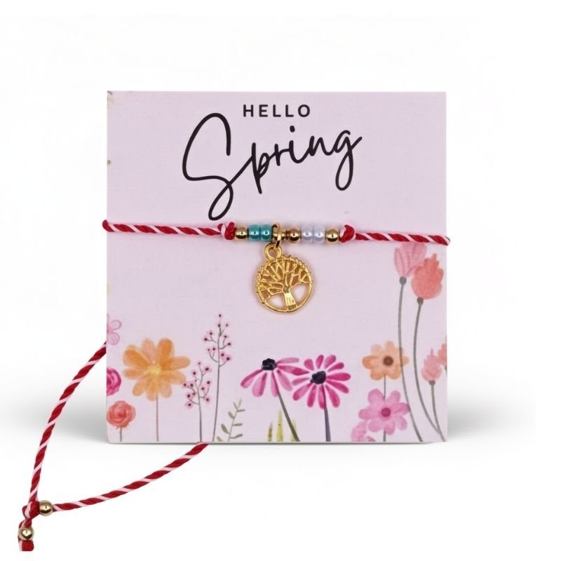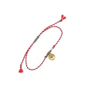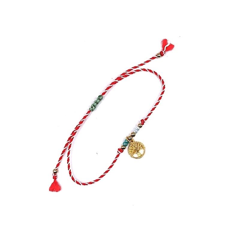 Μαρτάκι με κρεμαστό μεταλλικό Tree of Life σε χρυσό χρώμα και χαντρούλες γυάλινες περλέ.