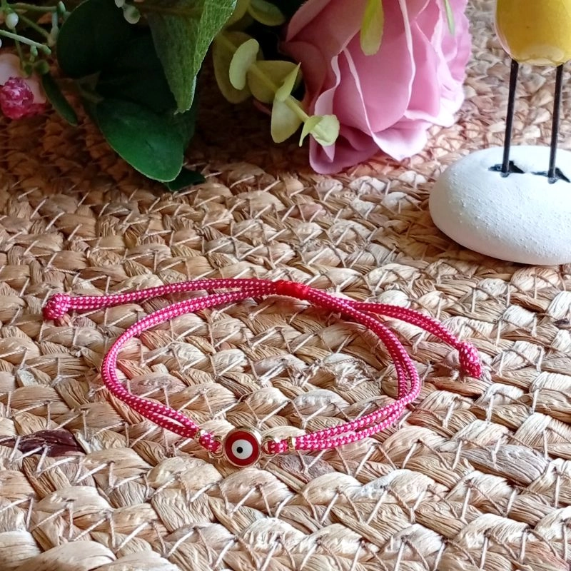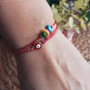 Βραχιόλι μαρτάκι με κόκκινο ματάκι και χάντρες.
