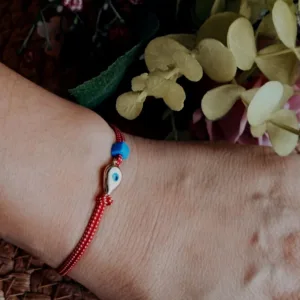 Βραχιόλι μαρτάκι με ματάκι-δάκρυ και μπλε χάντρα.