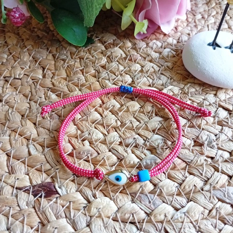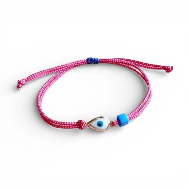Βραχιόλι μαρτάκι με μεταλλικό ματάκι-δάκρυ με σμάλτο και μπλε ακρυλική χάντρα.
