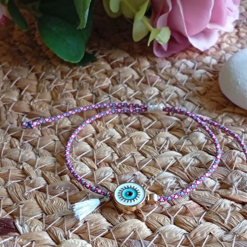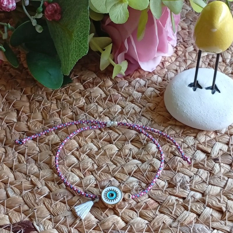 Βραχιόλι μαρτάκι με μάτι και φουντίτσα.