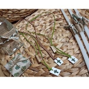 Μπορείτε να επιλέξετε το χρώμα του κορδονιού ώστε να ταιριάζει απόλυτα με το θέμα της βάπτισης — διαθέσιμα σε φυσικές αποχρώσεις όπως πράσινο και καφέ, αλλά και σε πιο κλασικά χρώματα όπως ροζ, μπλε, κ.ά.