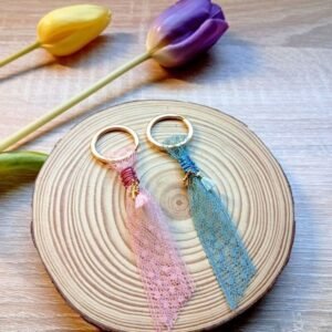 1 review for Μαρτυρικά μπρελόκ με δαντέλα και μακραμέ δέσιμο (ελάχ.10τμχ)