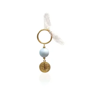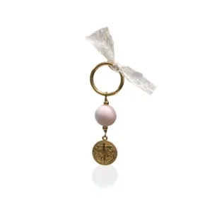 Μαρτυρικά μπρελόκ, με άσπρη ακρυλική μπίλια 16mm, επιχρυσωμένο κωνσταντινάτο δύο όψεων και εκρού δαντέλα.