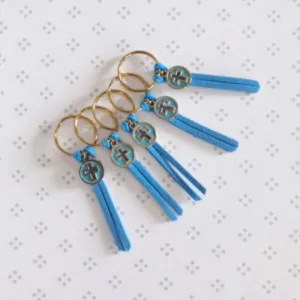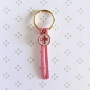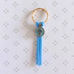 Μαρτυρικά βάπτισης μπρελόκ με suede κορδόνι και κρεμαστό σταυρουδάκι με σμάλτο.