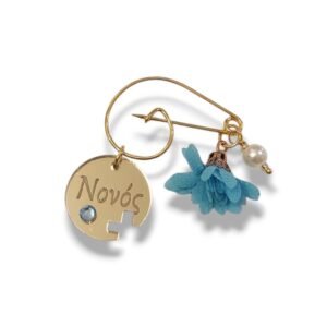 Μαρτυρικές παραμάνες για το μπαμπά και το νονό με γαλάζιο υφασμάτινο φουντάκι, πέρλα και πλέξιγκλας στοιχείο με χάραξη.