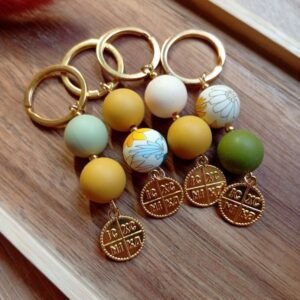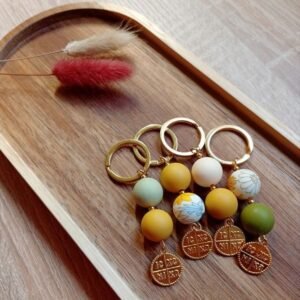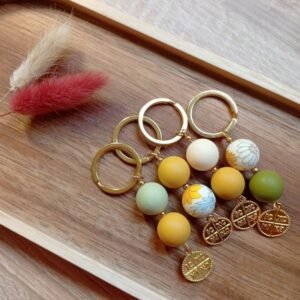 Μαρτυρικά βάπτισης μπρελόκ με χάντρες σιλικόνης και μεταλλικό χρυσό κωνσταντινάτο.