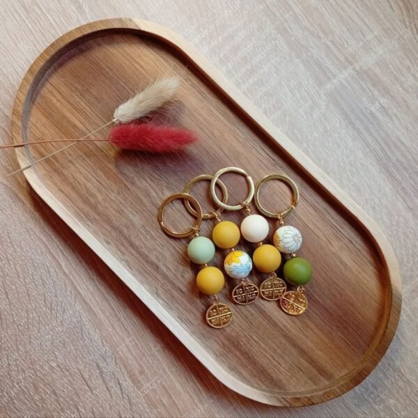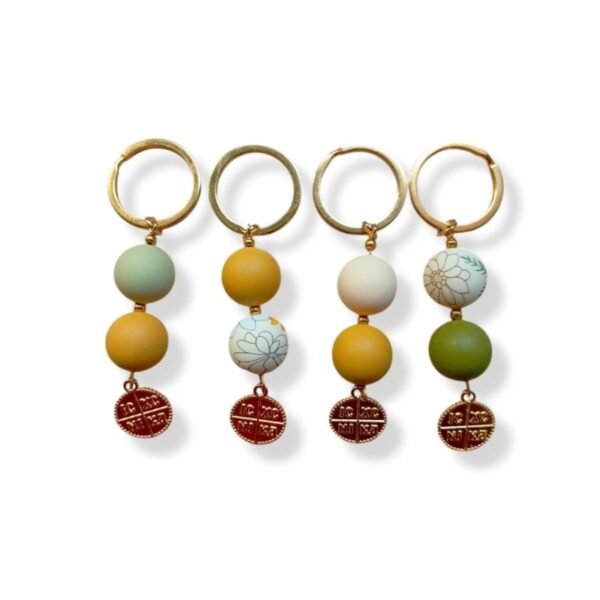 Μαρτυρικά βάπτισης μπρελόκ με χάντρες σιλικόνης και μεταλλικό χρυσό κωνσταντινάτο.