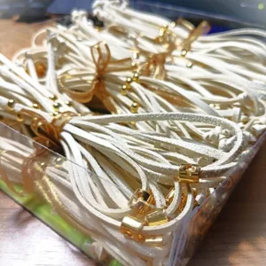 Minimal μαρτυρικά βραχιολάκια βάφτισης σουέντ, με ρυθμιζόμενο μήκος. Σταυρός περαστός κυλινδρικός και χαντρούλα σε χρυσαφί χρώμα.