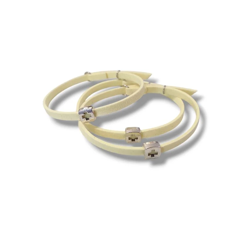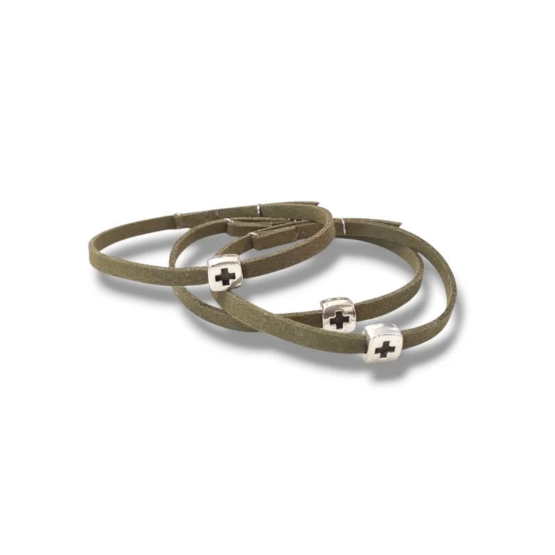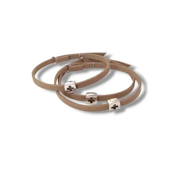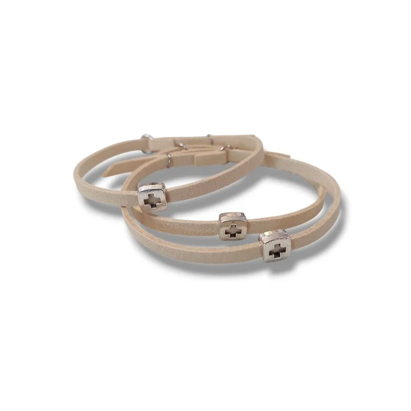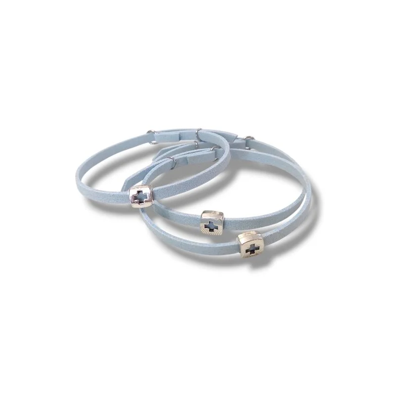 Μαρτυρικά βραχιόλια με ασημί στοιχεία και σουέτ κορδόνι.
