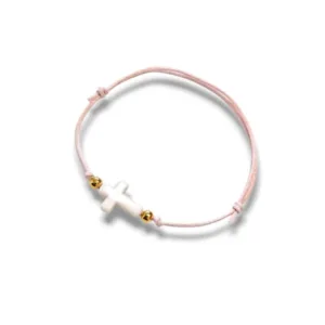 Μαρτυρικά βραχιόλια για τους καλεσμένους, με ακρυλικό λευκό σταυρό.
