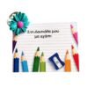 Είναι τοποθετημένος σε καρτελάκι με μήνυμα “Στη δασκάλα μου με αγάπη. Καλό Καλοκαίρι”.