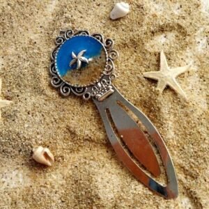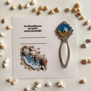 Μεταλλικός σελιδοδείκτης με θέμα παραλία, από υγρό γυαλί.