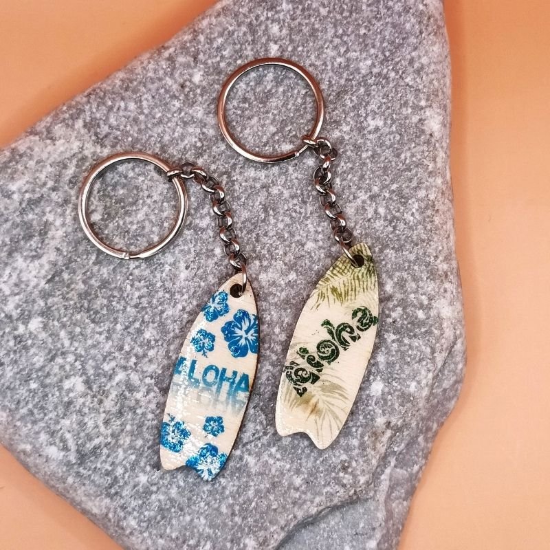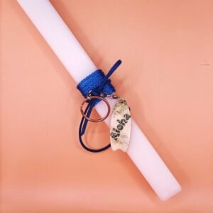 Λευκή αρωματική τετράγωνη λαμπάδα (διαστάσεις 30χ2χ2) και μπρελόκ με ξύλινο Surf σε δύο επιλογές: μπλε ή πράσινο.