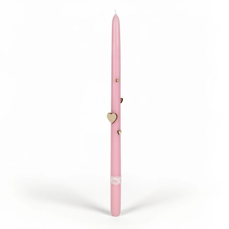 Μίνιμαλ Λαμπάδα ροζ με καρδούλες