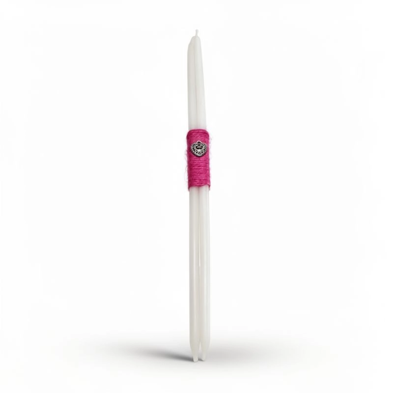 Άσπρα λαμπαδάκια 35εκ, με διακοσμητική μεταλλική καρδούλα.