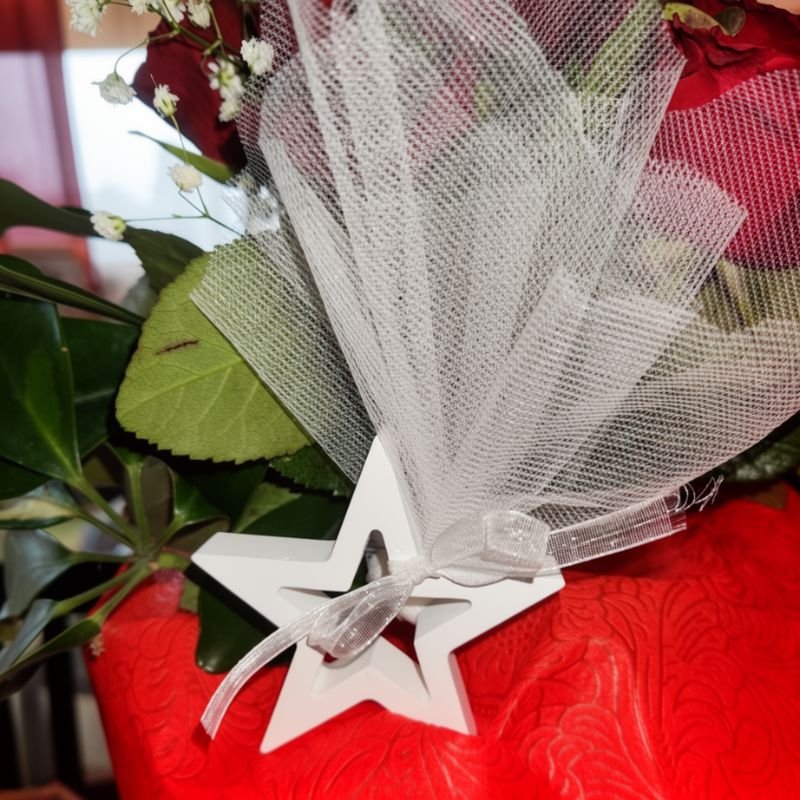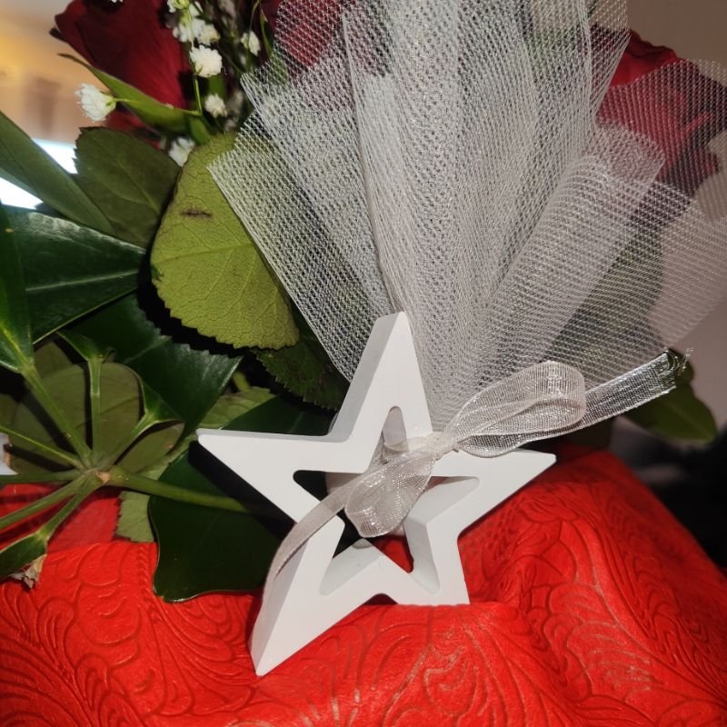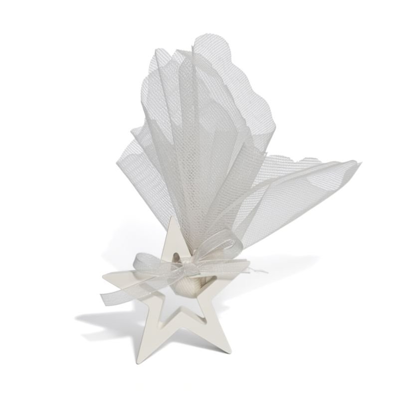 Μπομπονιέρα αστέρι από πορσελάνη έτοιμη με 3 κουφέτα.