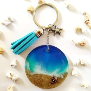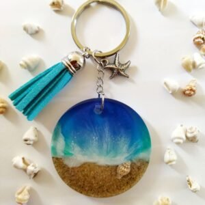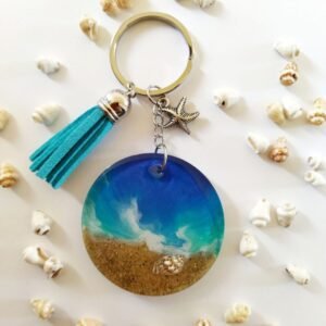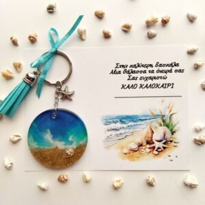 Χειροποίητο, πρωτότυπο και μοναδικό μπρελόκ από υγρό γυαλί ,στρογγυλό διαμέτρου 5 εκατοστών.