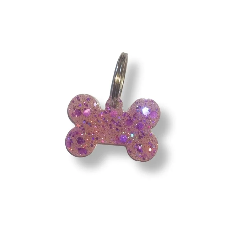 Μπρελόκ από υγρό γυαλί σε σχήμα κόκκαλο, το οποίο μπορεί να γίνει και ταυτότητα για κατοικίδιο.