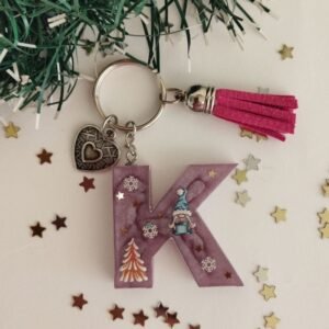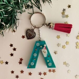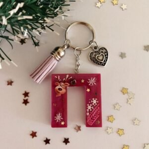 Μπρελόκ μονόγραμμα με χριστουγεννιάτικο θέμα από υγρό γυαλί. Στόλισε τη τσάντα, τα κλειδιά η το νεσεσερ σου.