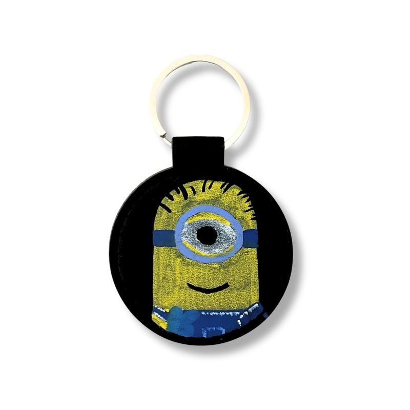 Μπρελόκ από δερματίνη, ζωγραφισμένο στο χέρι με ακρυλικά χρώματα, με minion.