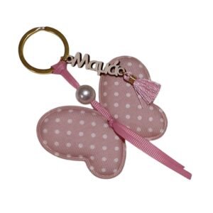 Μπρελόκ “Μαμά” Πεταλούδα από Ύφασμα σε Ροζ πουά