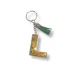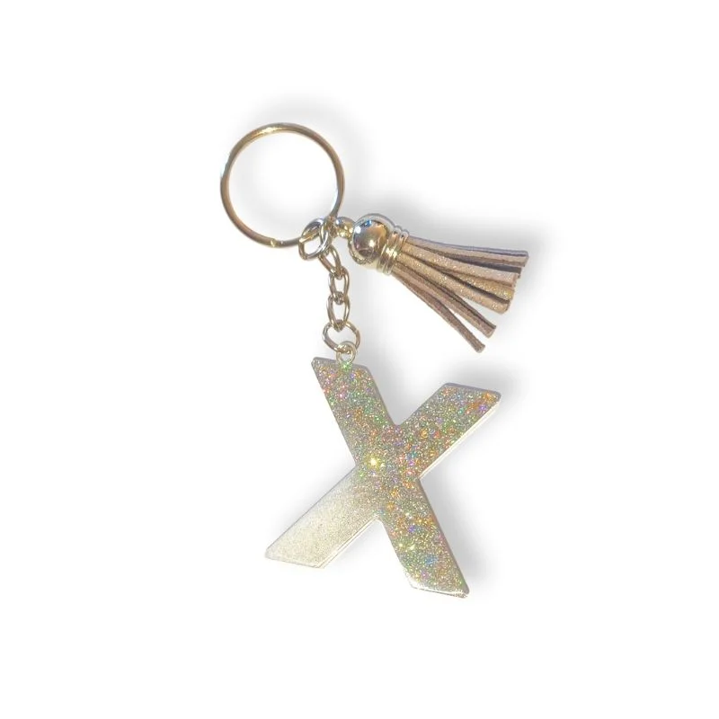 Μπρελόκ μονόγραμμα σε διακριτικό λευκό με γκρι γκλίτερ.