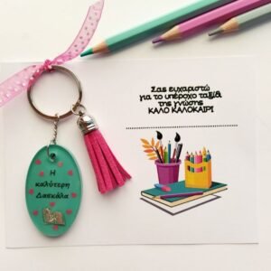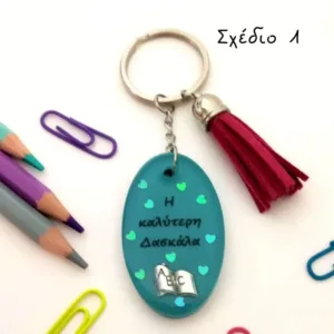 Μπρελόκ οβάλ από υγρό γυαλί για τη δασκάλα