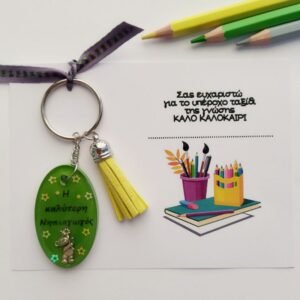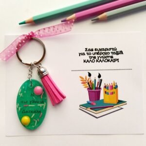 Χειροποίητο μπρελόκ από υγρό γυαλί για τη δασκάλα ή τη νηπιαγωγό