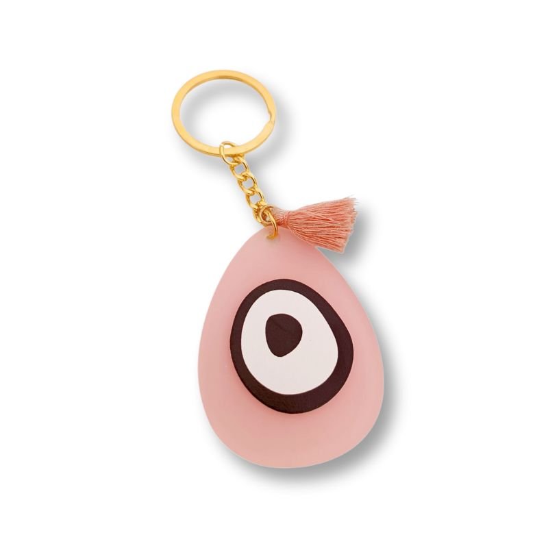 Μπρελόκ μάτι πλεξιγκλάς σε ροζ και μπλε ανοιχτό αποχρώσεις με αντίστοιχου χρώματος μικρή φουντίτσα.