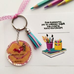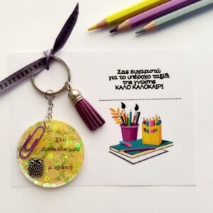 Χειροποίητο μπρελόκ από υγρό γυαλί για τη δασκάλα