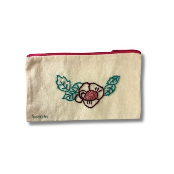 Χειροποίητη υφασμάτινη κασετίνα κεντημένη πάνω σε βαμβακερό ύφασμα, με μοναδικό σχέδιο με λουλούδια.
