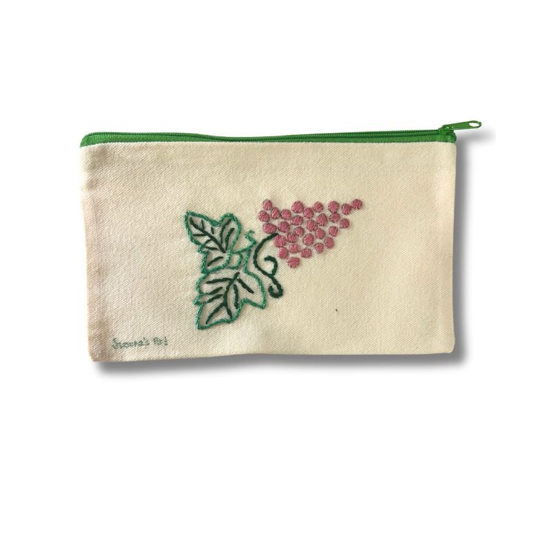 Χειροποίητη υφασμάτινη κασετίνα/νεσεσέρ κεντημένη πάνω σε βαμβακερό ύφασμα, με μοναδικό σχέδιο με σταφύλια.