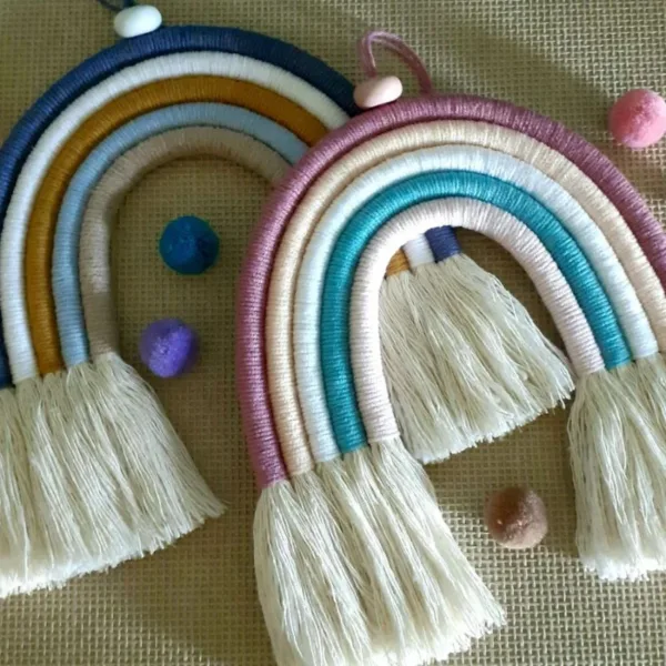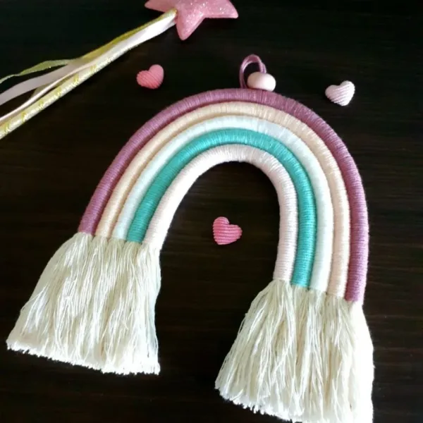 Κρεμαστό διακοσμητικό μακραμέ ουράνιο τόξο.