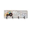 Είναι φτιαγμένη από φυσικό ξύλο, διαθέτει 4 γάντζους και έχει διαστάσεις 40*13*2,5 εκατοστά. Τα χρώματα της κρεμάστρας είναι κίτρινο, γκρι και μαύρο. Τα γαντζάκια έχουν χρώμα μαύρο.