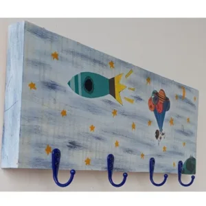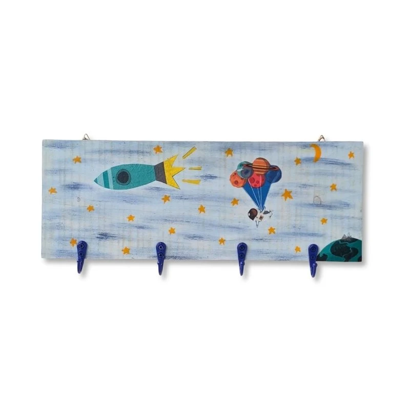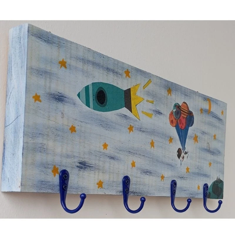 Χειροποίητη παιδική κρεμάστρα τοίχου για αγόρι με θέμα το διάστημα.